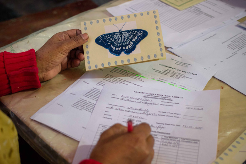 We give our producers the opportunity to learn how to produce and market jute products (primarily cards and bags). We also teach our artisans about traditional Kantha and modern stitching techniques. These skills increase the economic capacity of our artisans and will help them to create their own businesses in the future should they choose to do so. Furthermore, we provide our artisans with onsite training in order to develop their business and leadership skills. We also offer help and training in several other aspects of their lives, such as mother care and nutrition.